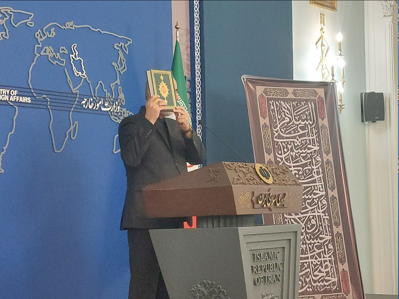 سخنگوی وزارت خارجه در آغاز نشست خبری خود با خبرنگاران با بالا بردن قرآن، بار دیگر اهانتهای اخیر صورت گرفته به قرآن کریم را محکوم کرد.